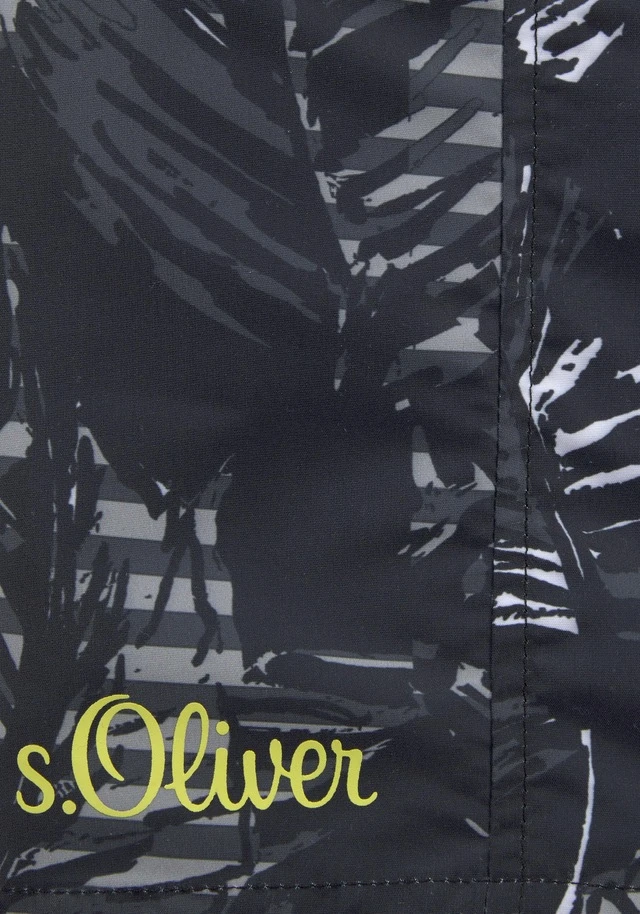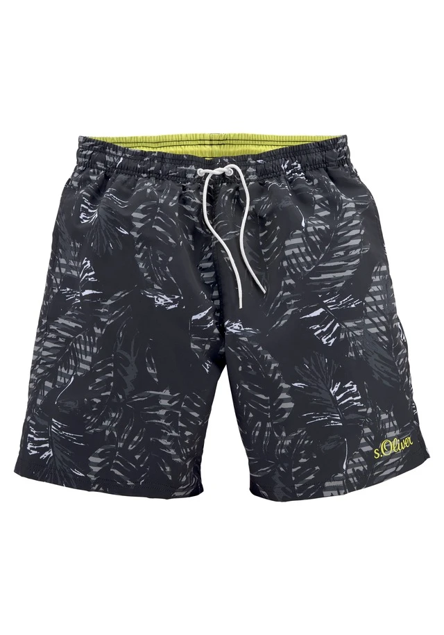 Badeshorts von s.Oliver im trendigen Alloverdruck mit Kontrasdetails. Elastischer Bund mit Außenkordel. Mit seitlichen Eingrifftaschen und Innenslip. Seitenlänge in Gr. M ca. 47 cm. Schöne Mircrofaserqualität aus 100% Polyester. Innenslip: 100% Polyester