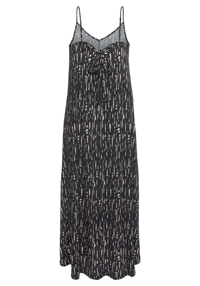 Luftiges Maxikleid von s.Oliver. Dezenter V-Ausschnitt. Rücken mit Schleifendetail. Sommerlich: dünne Spaghettiträger, verstellbar. In leicht figurumspielender Passform. Perfekt für Strandurlaub und warme Tage. Weiches Material.