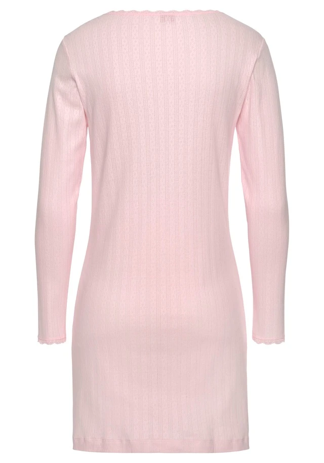 Nachthemd mit feiner Häkelkante am Rundhalsauschnitt in Midi länge. Angenehme Baumwollqualität.