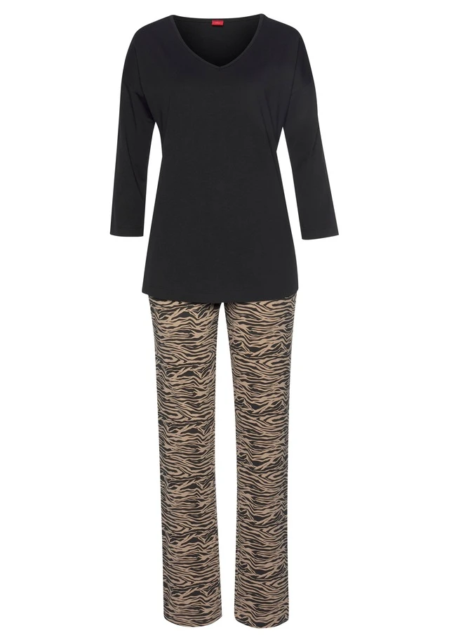 s.Oliver Pyjama, (2 tlg., 1 Stück), lange Hose mit Animal-Print
