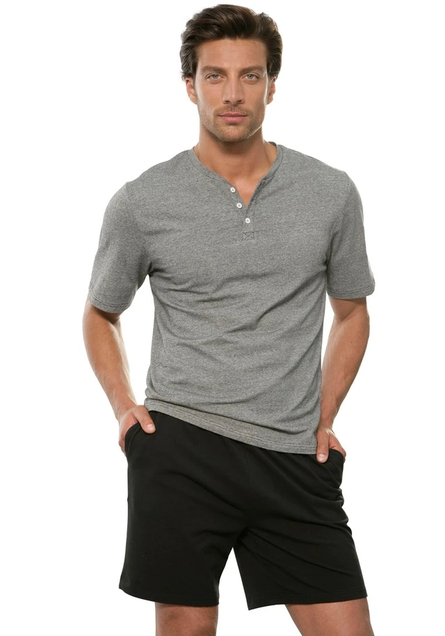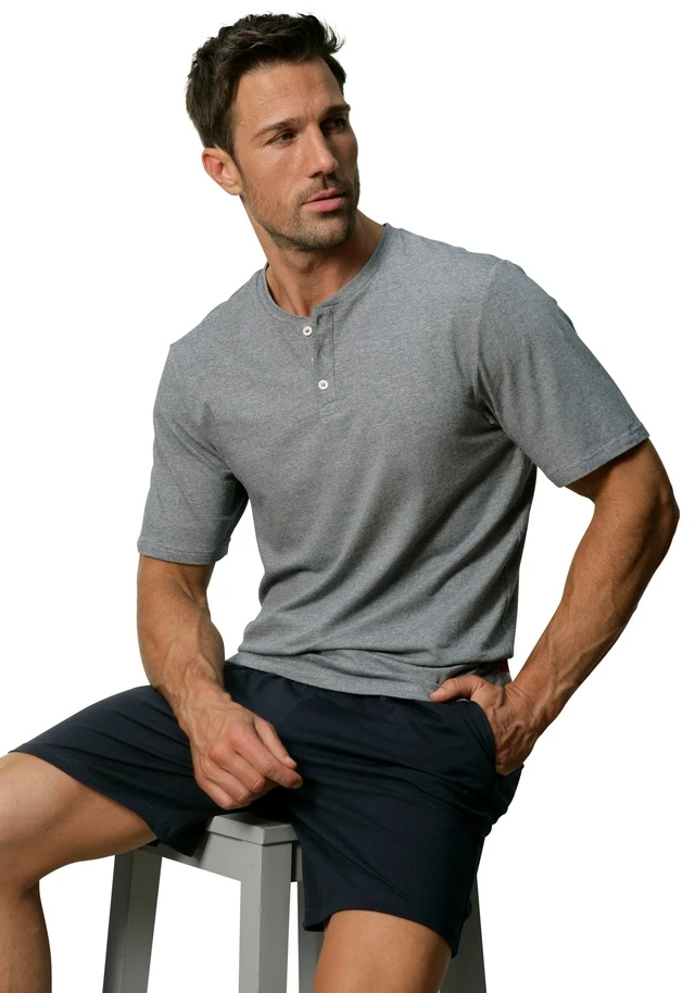 Shorty für Herren. Shirt mit Knopfleiste, Hose mit Seitentaschen. Obermaterial: 95% Baumwolle, 5% Elasthan