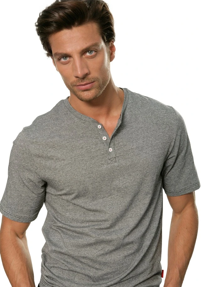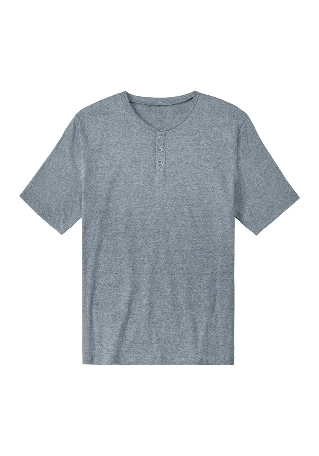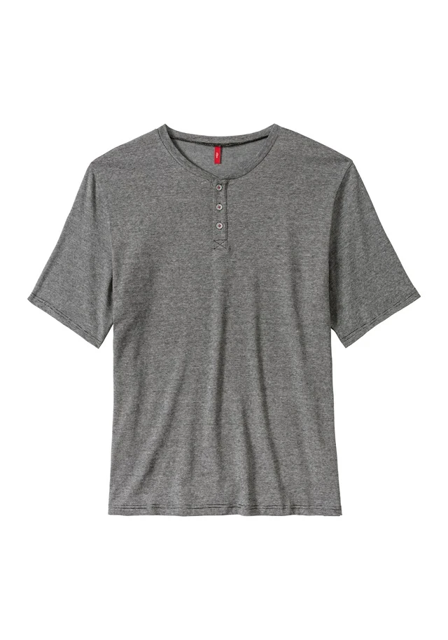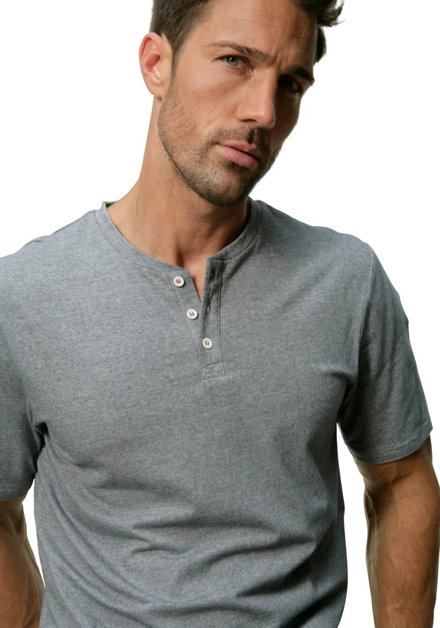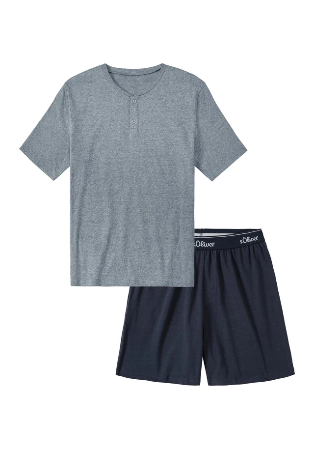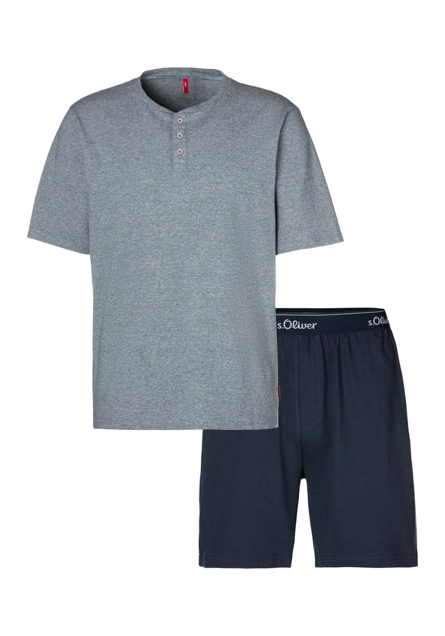 s.Oliver Pyjama, (2 tlg., 1 Stück), Oberteil in Melange-Optik mit Knopfleiste