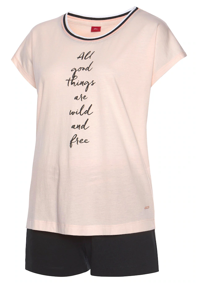 s.Oliver Shorty, (2 tlg., 1 Stück), mit gestreiften Bündchen und Schriftprint