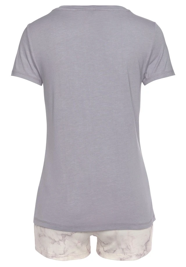 Eleganter Kurzpyjama mit Marmordruck aus softer und nachhaltiger Viskose.