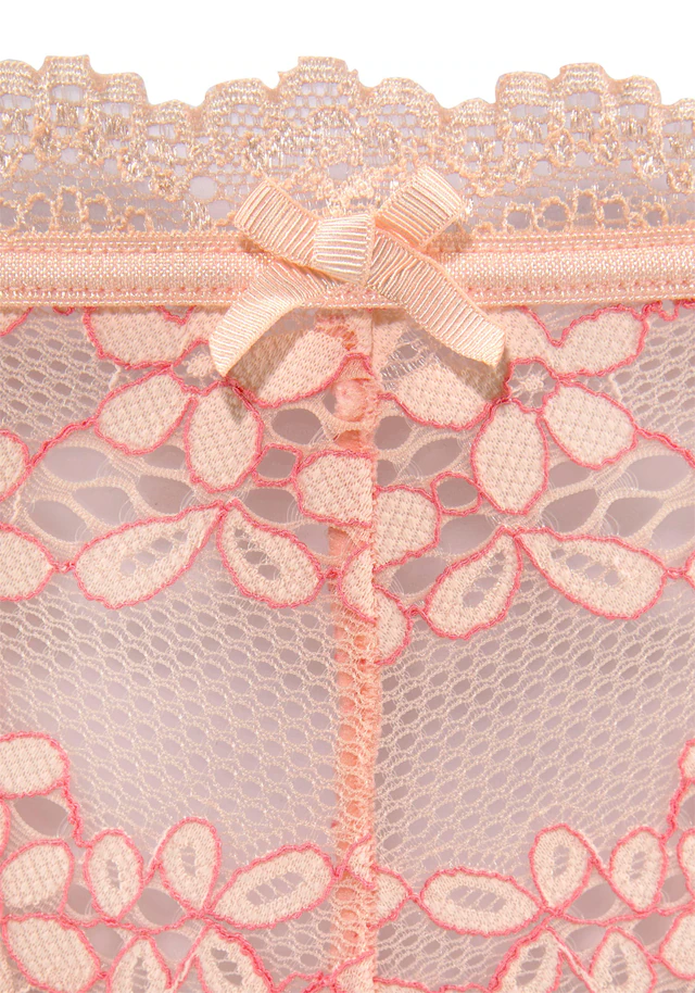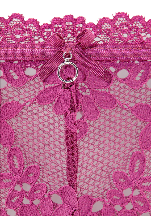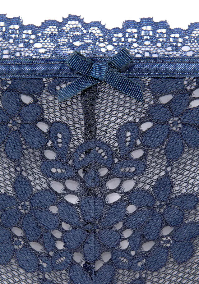s.Oliver: Stringpanty aus zauberhafter Spitze in floraler Optik. Mit verziertem Bund. Zierschleife in der vorderen Mitte. Mit Baumwollzwickel. Aus 80% Polyamid, 20% Elasthan.