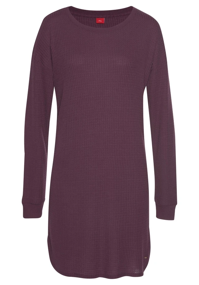 Kurzes Schlafkeid von s.Oliver. Lange Ärmel mit überschnittenen Schultern und Bündchen. Kleines Metallemblem am abgerundeten Saum. Rundhalsausschnitt. Für erholsame Nächte. Aus hochwertigem Waffelpiqué.