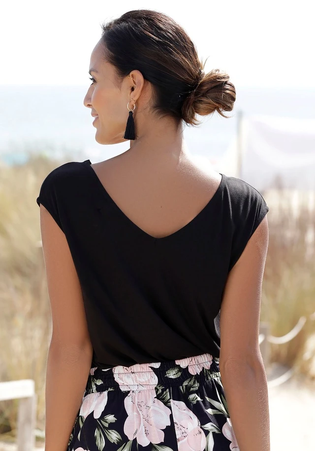 s.Oliver T-Shirt, mit Zierbändern am Ausschnitt
