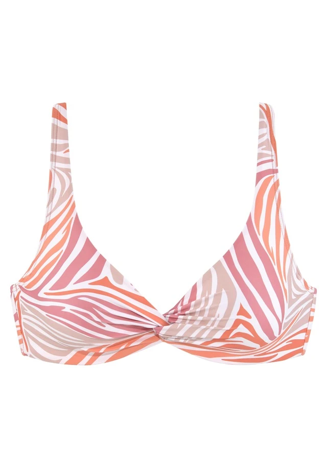Obermaterial: 84% Polyamid, 16% Elasthan. Futter: 92% Polyester, 8% Elasthan. Softe Microfaser. Sommerlicher Animalprint. Top mit seitlichen Stäbchen und verstellbaren Trägern. Hinten zu binden.