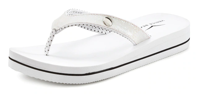 Zehentrenner von VENICE BEACH. Absatzhöhe ca. 3 cm. Obermaterial und Futter aus Lederimitat. Decksohle und Laufsohle aus Synthetik.