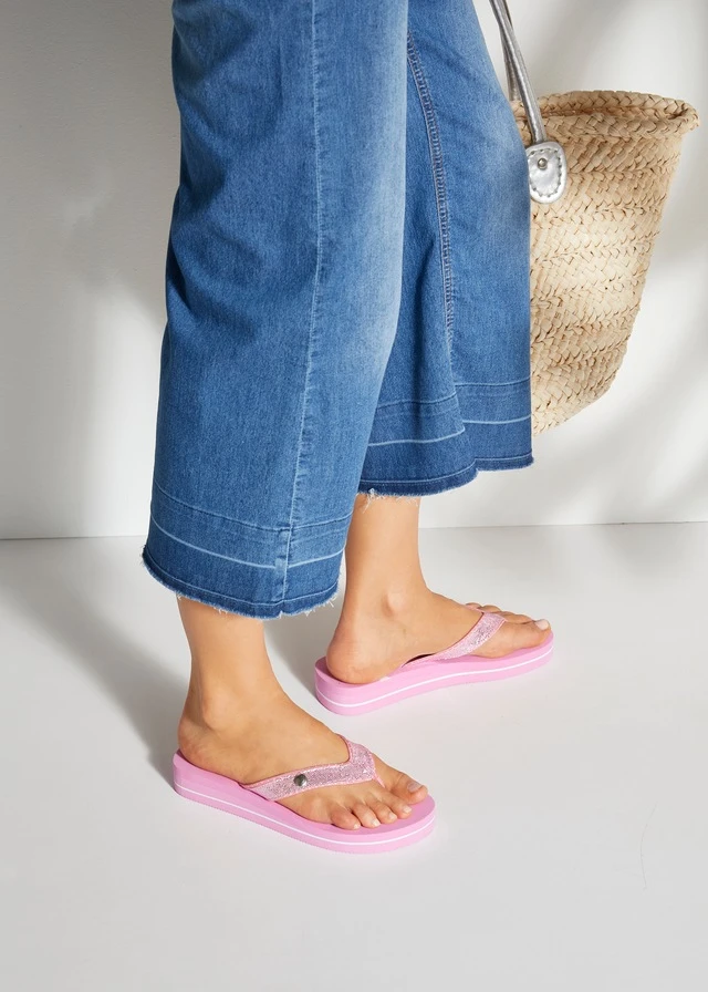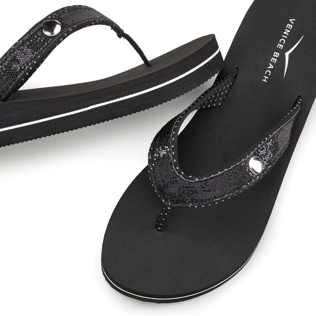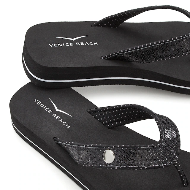 Venice Beach Badezehentrenner, Pantolette ultraleicht mit Glitzerband VEGAN