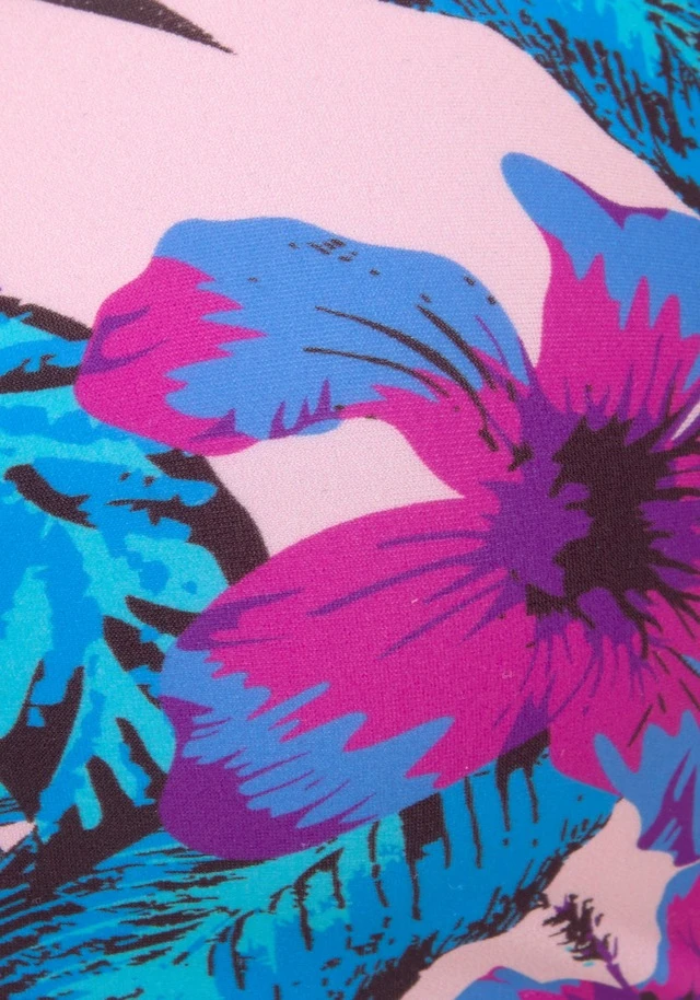 Bügel-Bandeautop von Venice Beach mit floralem Allovermuster. Wattierte Cups mit herausnehmbaren Kissen. Abnehmbares Necklace zum Binden für nahtlose Bräune. Aus der Mix-Kini-Serie. Pflegeleichte, elastische Qualität.