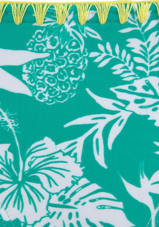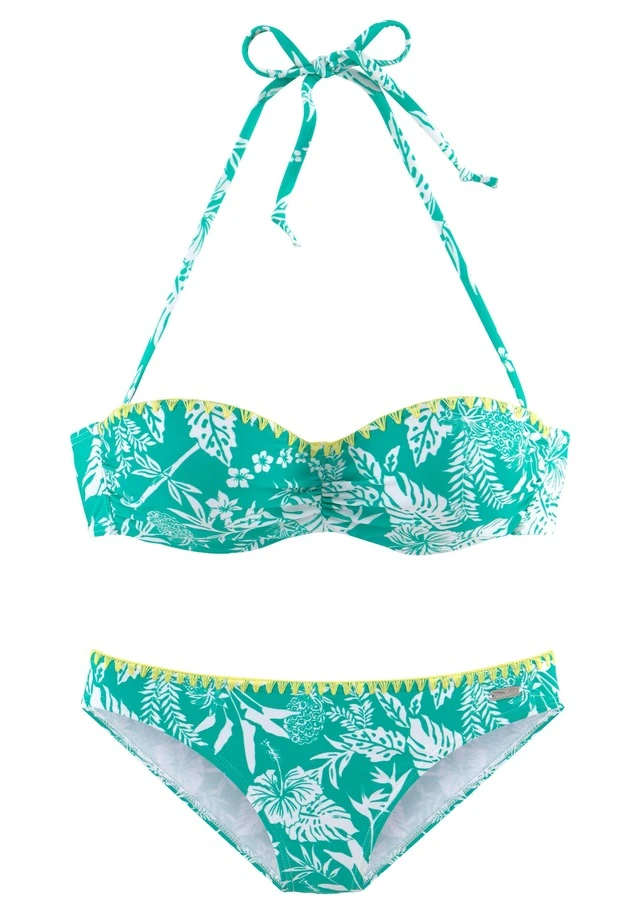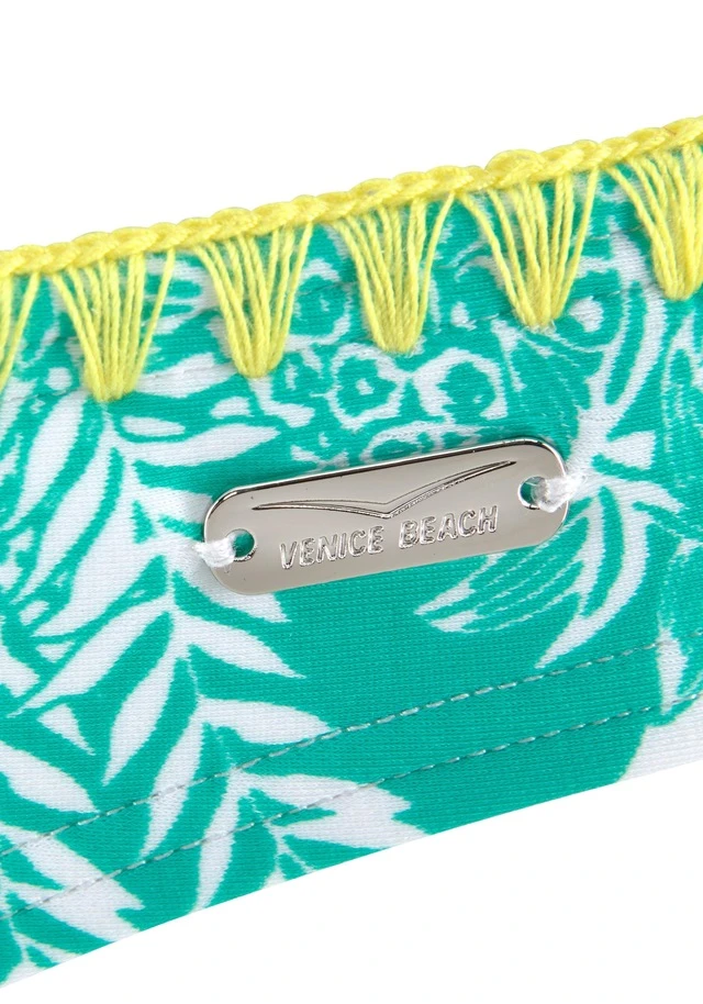 Bügel-Bandeaubikini von Venice Beach mit Alloverprint und Häkelkante. Wattierte Cups mit herausnehmbaren Kissen. Abnehmbare Träger. Klassisch geschnittene Bikinihose. Elastisches Material.