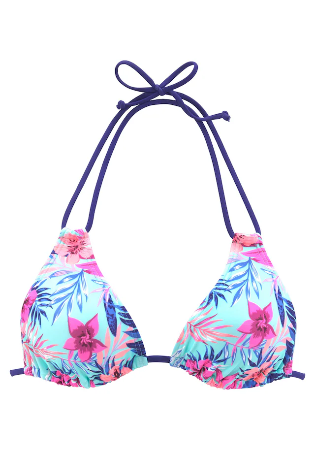 Triangel-Top von Venice Beach. Regulierbar, mit herausnehmbaren Cups. In 2 Designs: mit Blumenprint oder komplett im Streifenlook. Obermaterial: 80% Polyamid, 20% Elasthan LYCRA® XTRA LIFE™. Futter: 100% Polyester