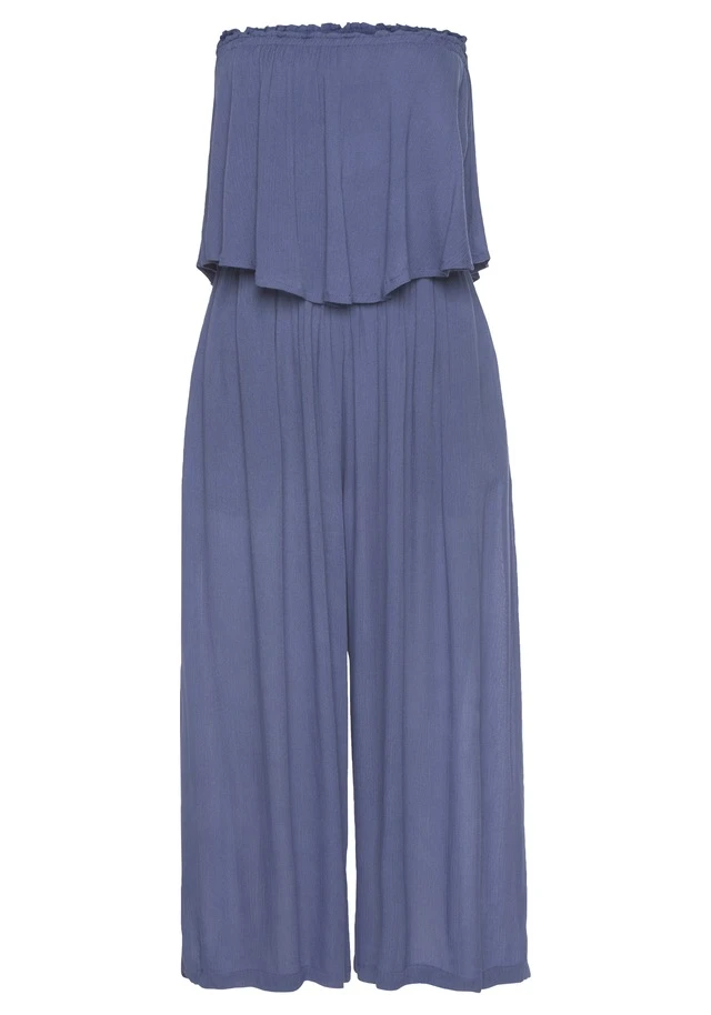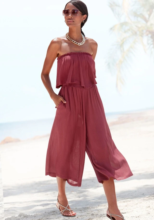 Eleganter Bandeau-Overall von Vivance mit gesmoktem Oberteil mit modischen Volants. Seitliche Eingrifftaschen. Weite Hosenform in 7/8-Länge. Aus weicher Viskosequalität.