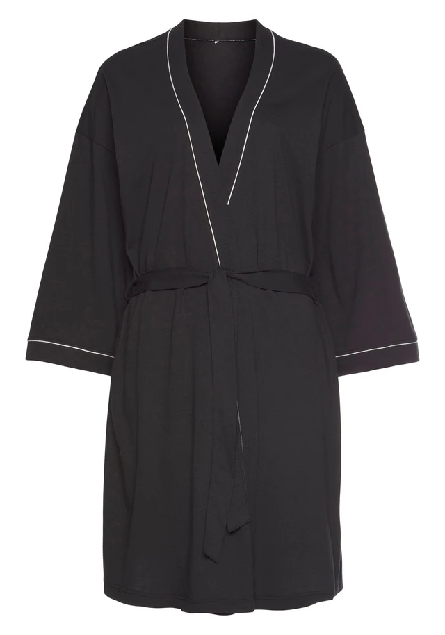 Eleganter Kimono von Vivance Dreams. Mit Bindeband an der Taille, Kontrastpaspeln an der vorderen Kante und an den Ärmelenden. Softe Single-Jersey-Qualität aus Modalmix.