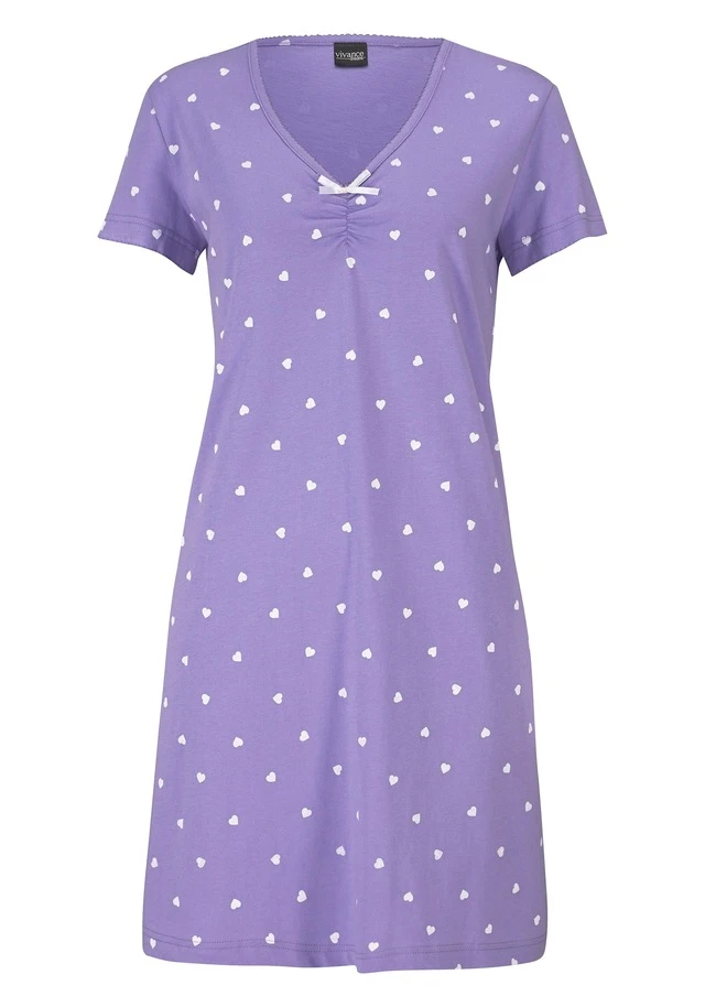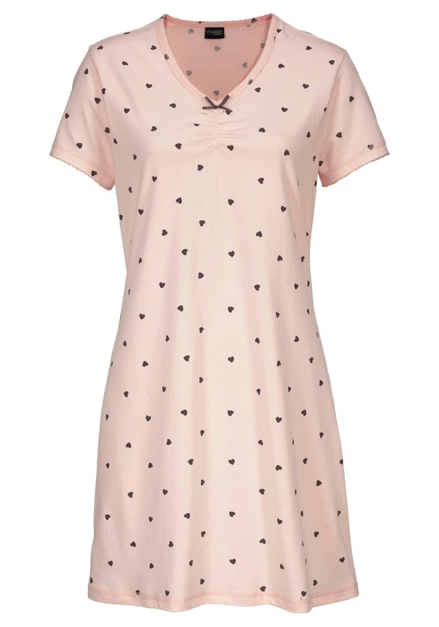 Tolles Nachthemd von Vivance Dreams im Dopplepack! Mit V-Ausschnitt, kleiner Raffung und süßer Zierschleife. Ausschnitt und kurze Ärmel mit hübscher Einfassung. Allover bedruckt mit süßem Herzchenprint. Aus weichem Single Jersey aus 100% Baumwolle.