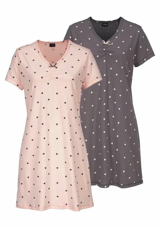 Vivance Dreams Nachthemd, (2er-Pack), mit Herzchenprint