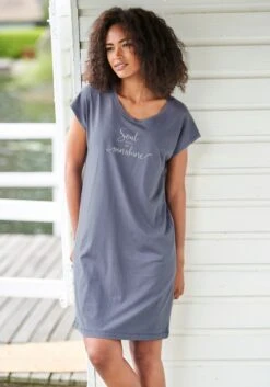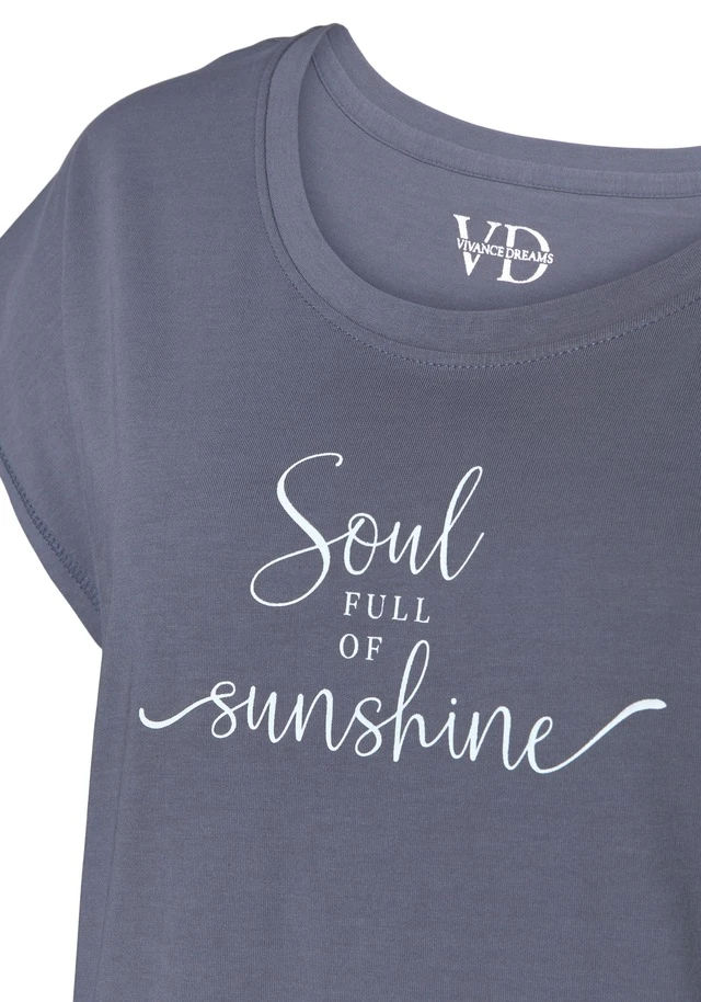 Kurzes Nachthemd von Vivance Dreams. Mit Wording-Print vorn. Bequeme Passform mit Rundhalsausschnitt und kurzen, angeschnittenen Ärmeln. Weiche Single Jersey-Qualität aus 50% Baumwolle, 50% Viskose