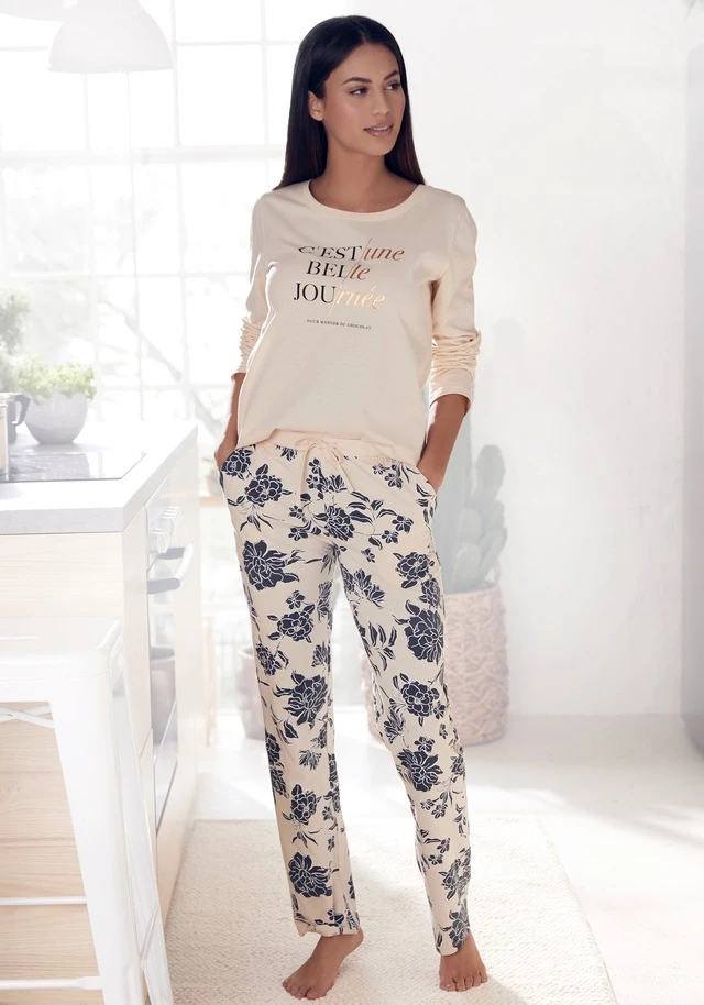 Vivance Dreams Pyjama, (2 tlg., 1 Stück), mit großem Blumen-Druck