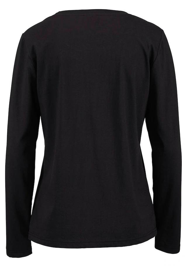 - Langes schwarzes Shirt mit rundem Ausschnitt und Frontprint