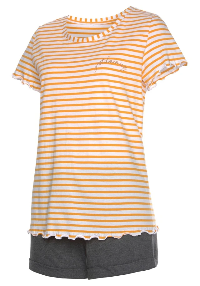 Vivance Dreams Shorty, (2 tlg., 1 Stück), im Streifenmuster mit Kräuselsäumen