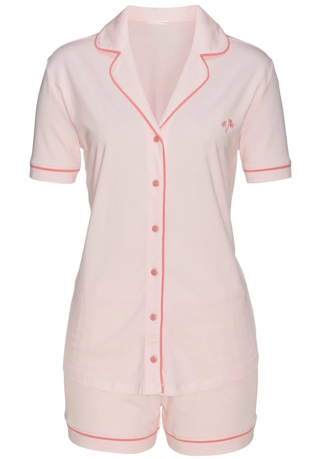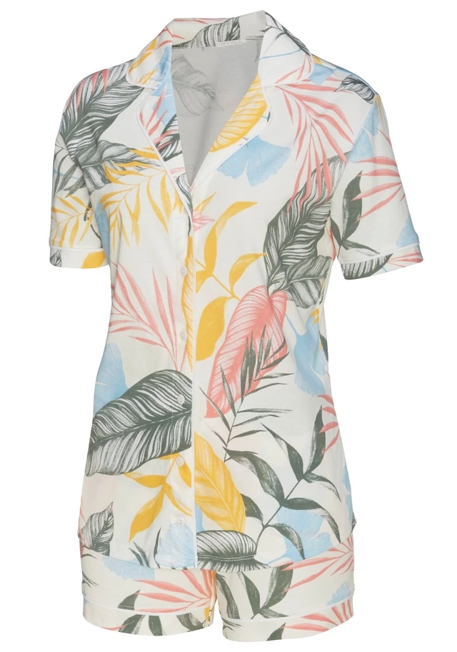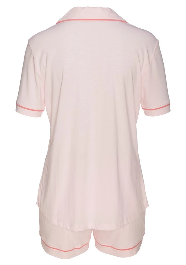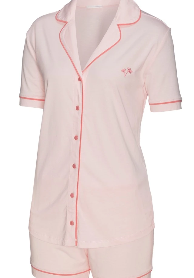 Klassischer Shorty von Vivance Dreams. Hemd mit kurzem Reverskragen, vorderer Knopfleiste und kurzen Ärmeln. Schlafshorts mit elastischem Tunnelzugbund. Weiche Single-Jersey-Qualität aus Baumwoll-Viskose-Mix.