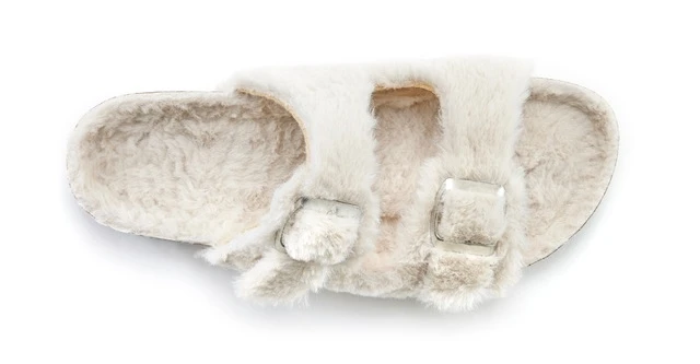 Kuschel-Pantolette mit Kunstfell und Korkfußbett von LASCANA. Made in Spain. Obermaterial, Futter, Decksohle und Laufsohle aus Synthetik.