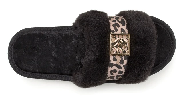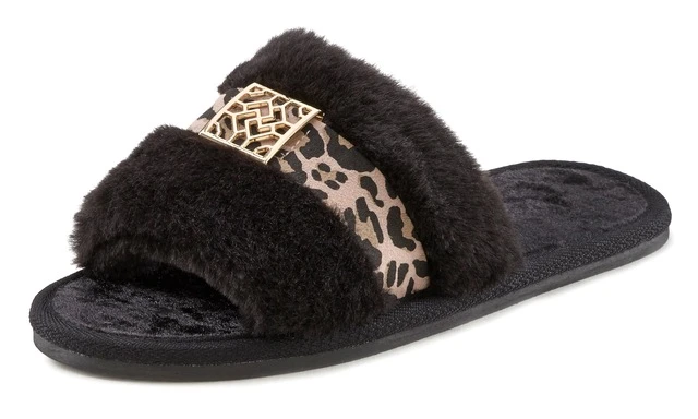 Vivance Hausschuh, Pantolette mit Print-Applikation und kuscheligem Fellimitat VEGAN