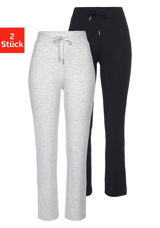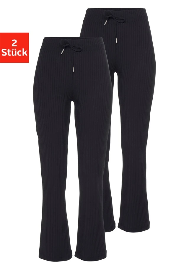 Relaxhose im 2er-Pack von Vivance. Gerippt. Mit elastischem Tunnelzugbund. Flared-fit. Perfekt für zu Hause. Feine, weiche Qualität.