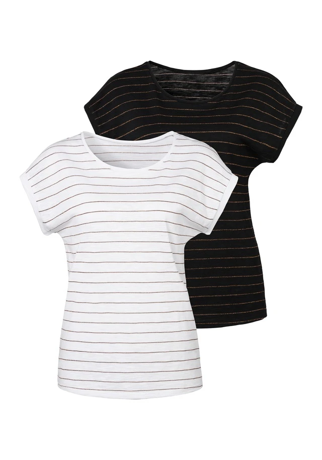 Vivance T-Shirt, (2er-Pack), mit kupferfarbenen Lurex-Streifen