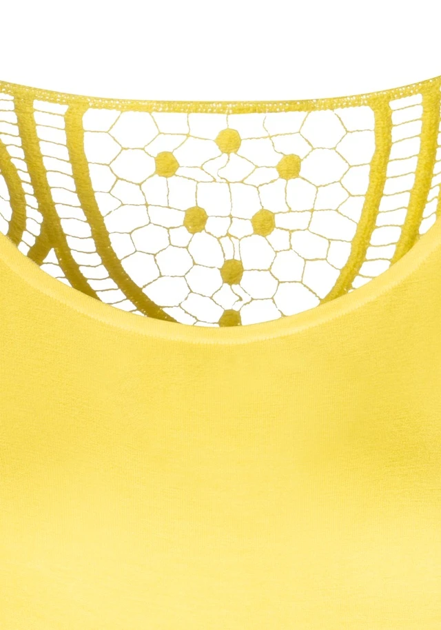 Vivance T-Shirts mit weichem Häkeleinsatz am Rücken. Gummizug am Bund für eine lockere Passform. Aus elastischer Qualität mit nachhaltiger Viskosefaser.