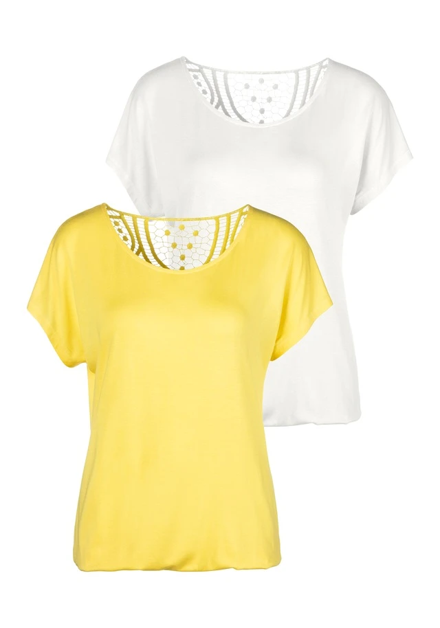 Vivance T-Shirt, (2er-Pack), mit weicher Häkelspitze am Rücken