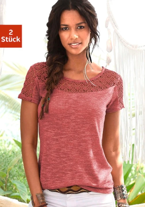 Vivance T-Shirt, (2er-Pack), mit weicher Häkelspitze